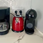 Cette propriété comprend une salle de bains avec un bidet, une douche à l'italienne et une toilette séparée. Un sèche-cheveux et des draps de bain sont également disponibles pour le confort des clients.